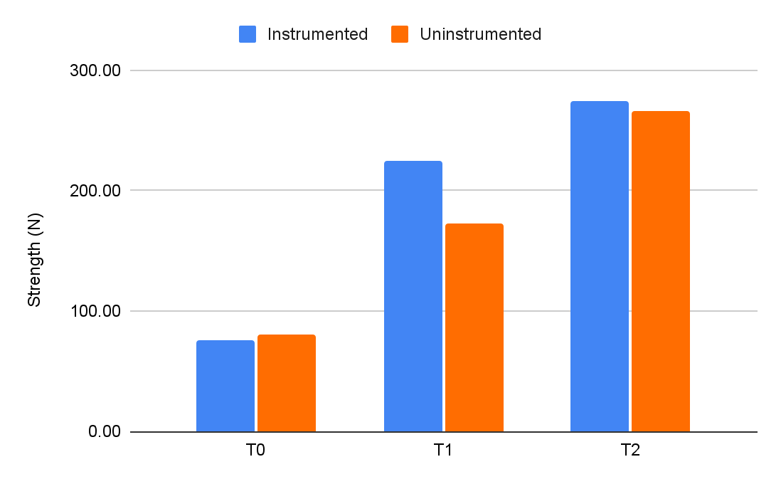 Figure 1 Change in Quadriceps Maximum Isometric Strength Across Study Visits (Instrumented vs. Uninstrumented Assessment)